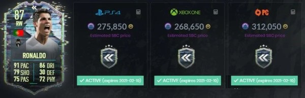 FUT 21 Flashback C. Ronaldo SBS 2: The cost is approximate 80,000.