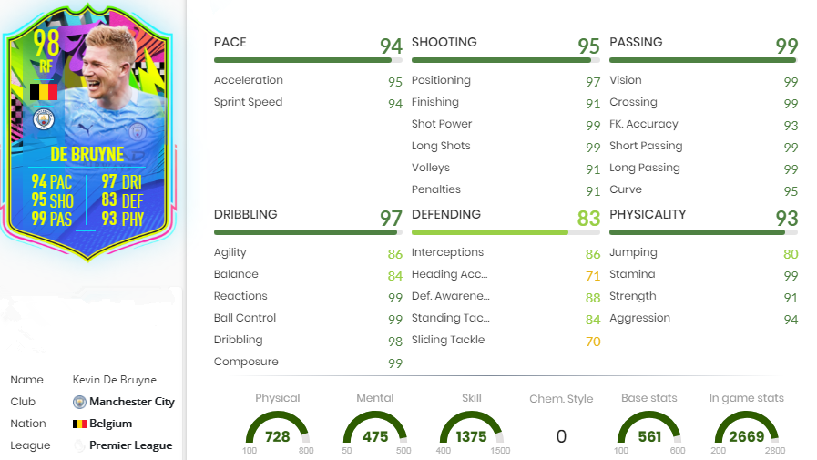 A further developed job for Kevin De Bruyne has seen him compensated with an enormous 98 OVR to match the absolute best advances in the game.De Bruyne has been the motivation behind Belgium's Euro 2020 mission up until this point, calling the shots with objectives and helps.