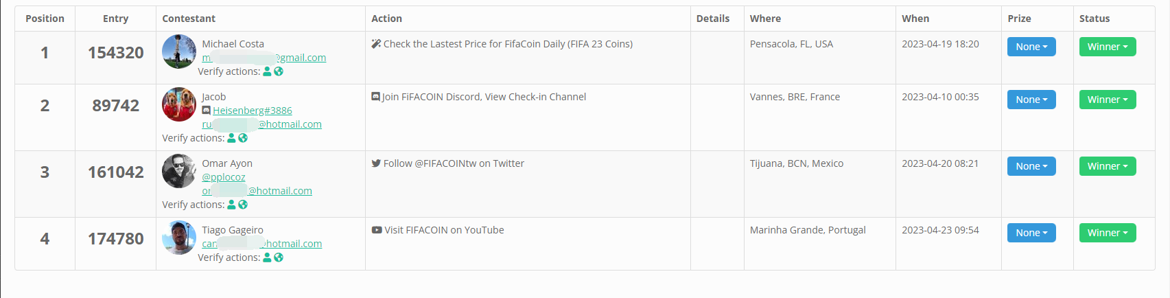 Winners Announcement:FIFACOIN POTM Giveaway